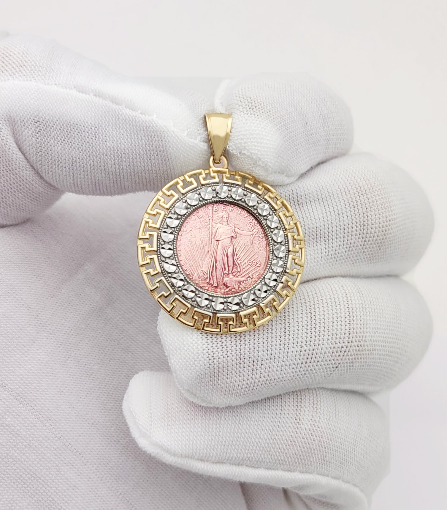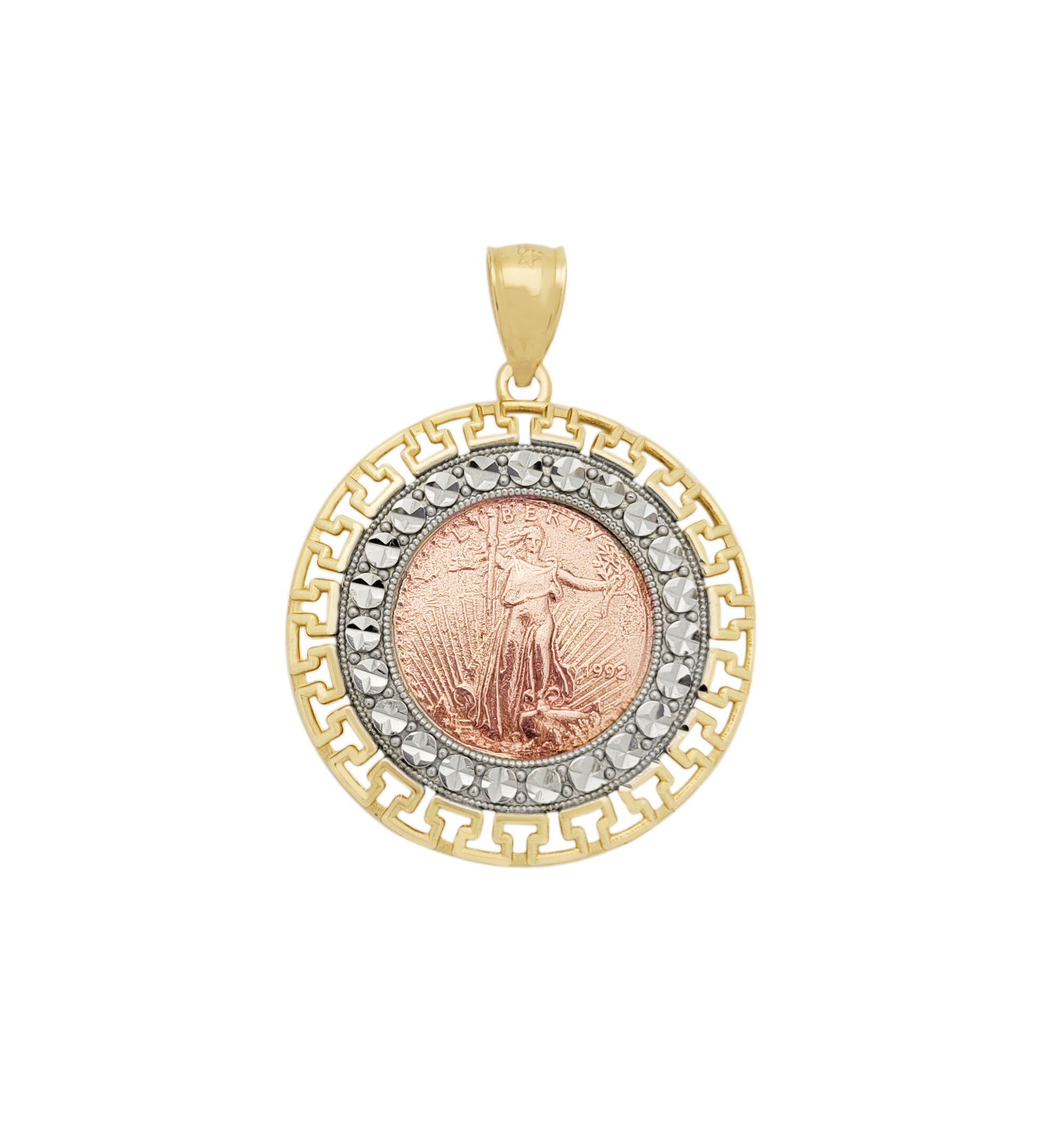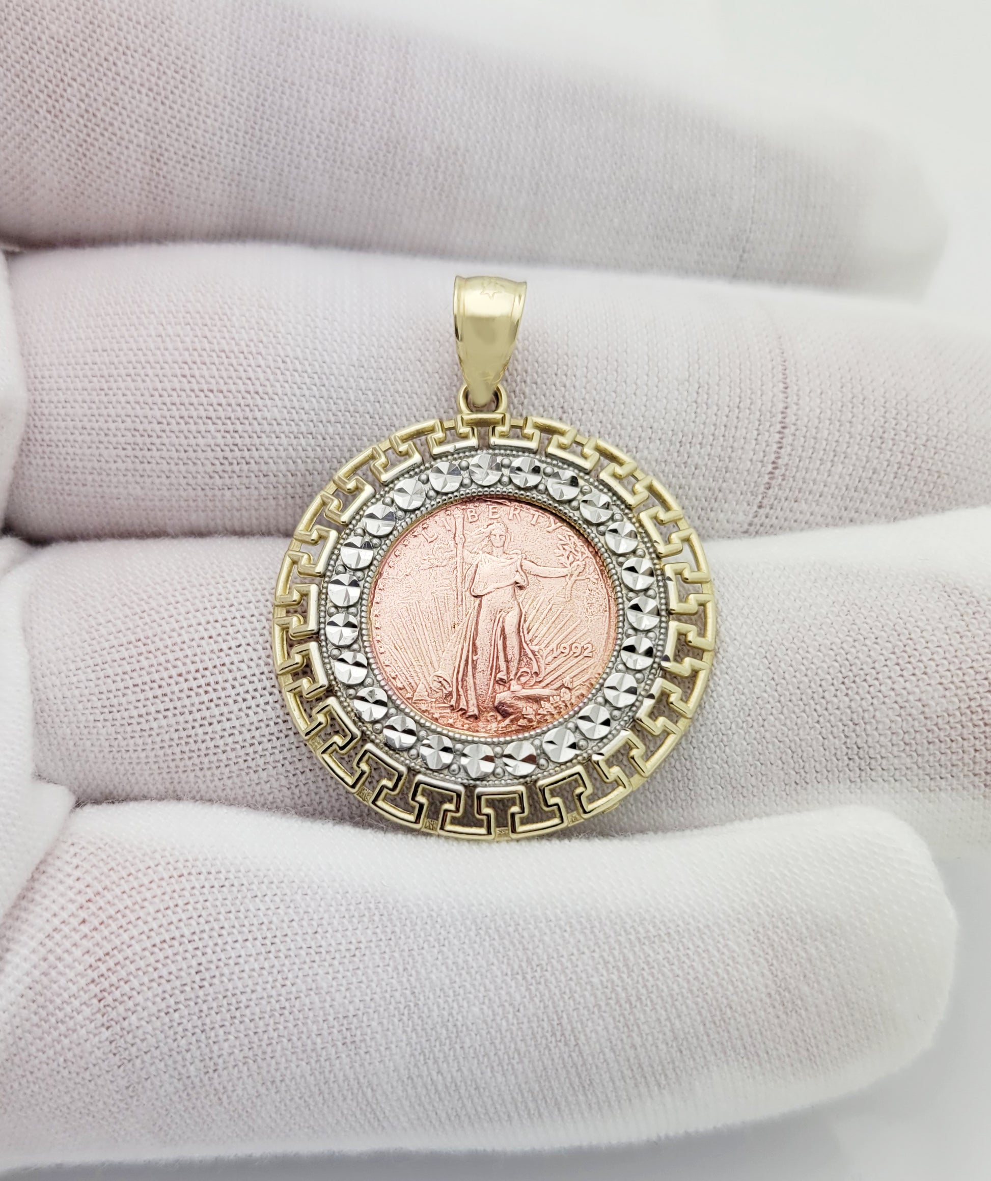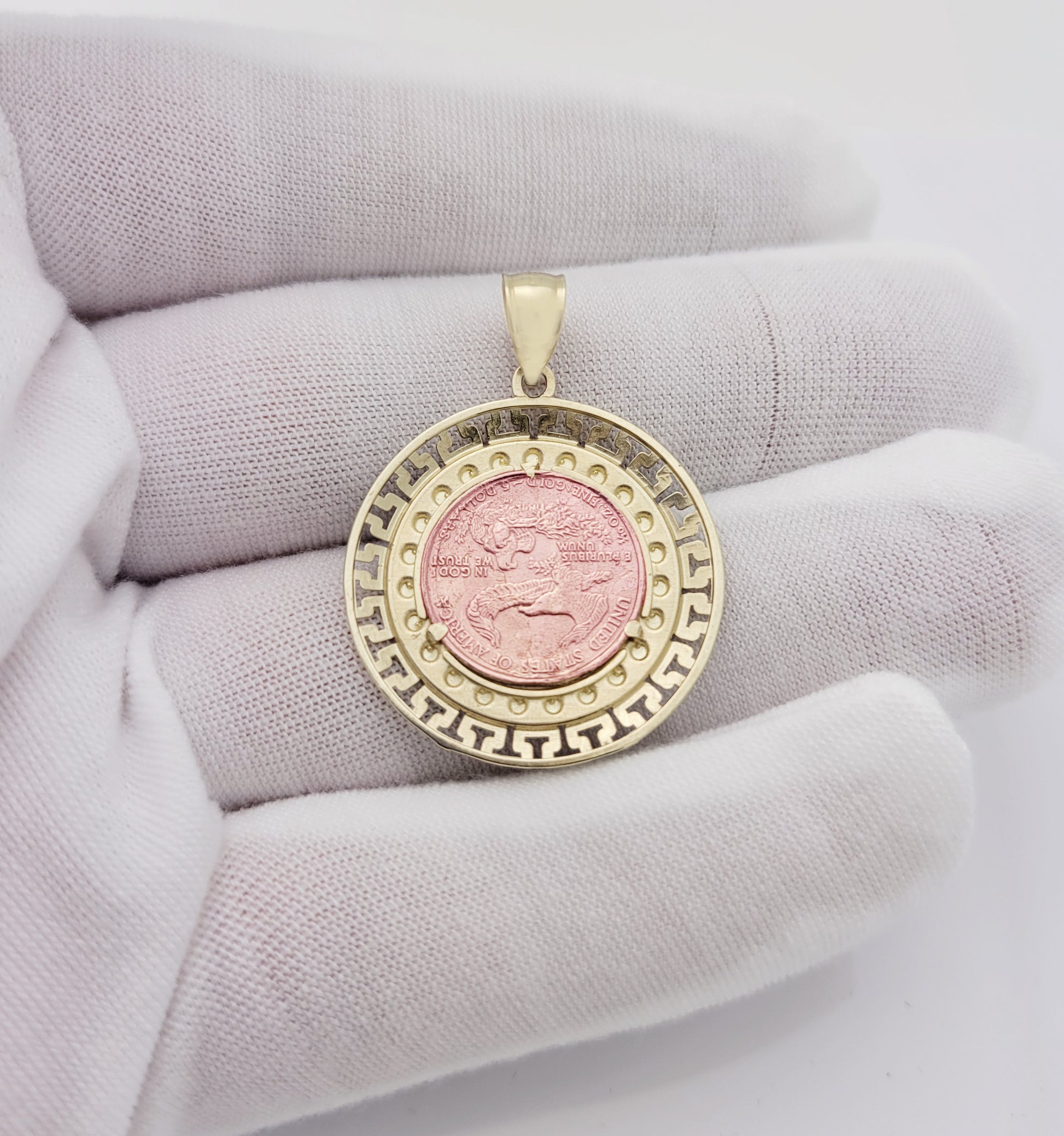 10K Yellow & Rose Gold Walking Liberty Coin And Bezel Pendant