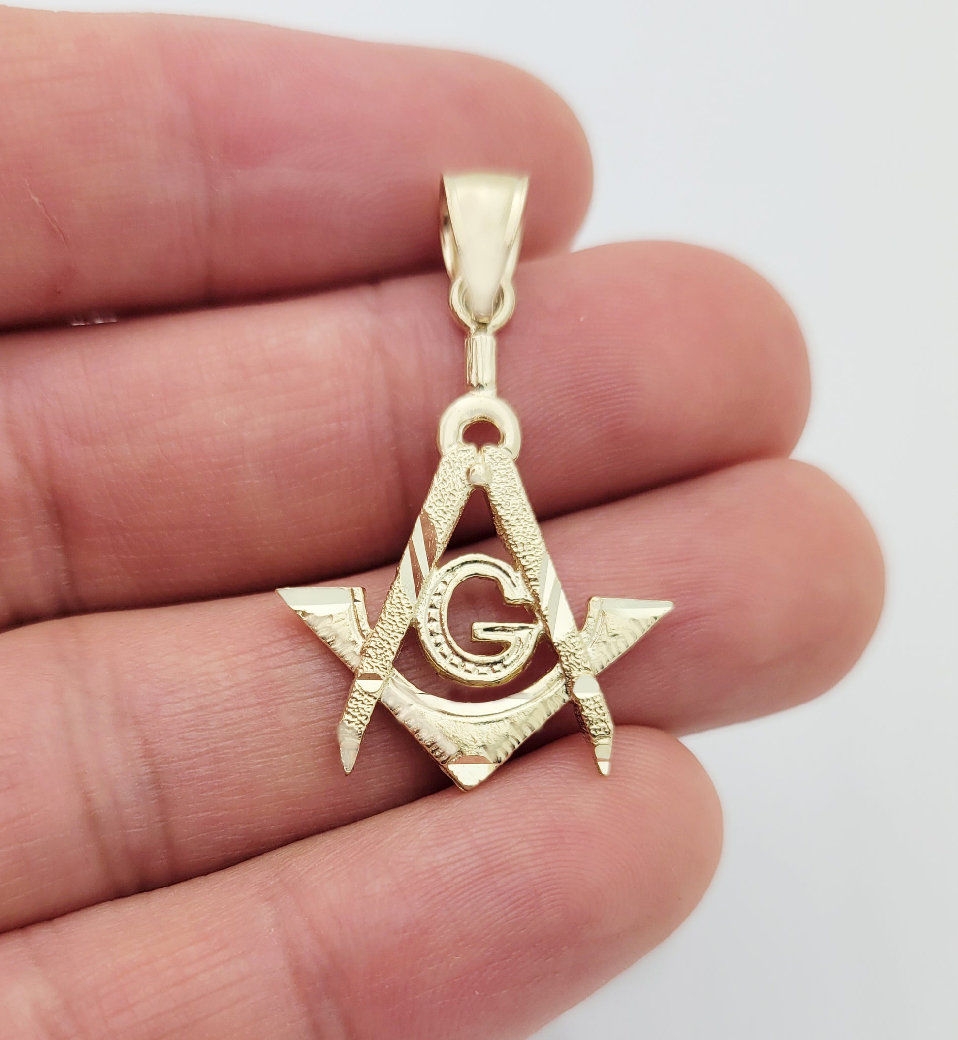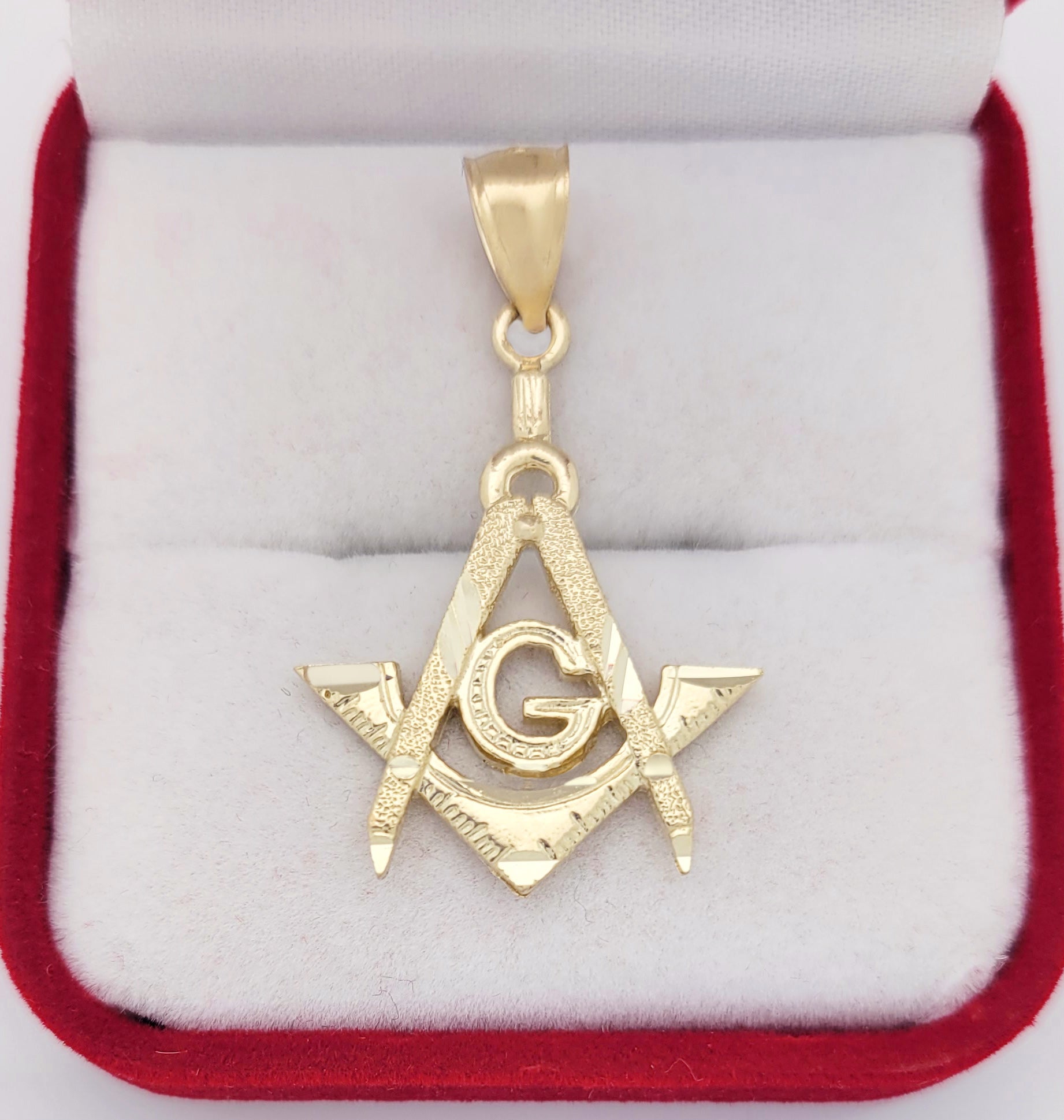 10K Yellow Solid Gold Masonic FreeMasonry Pendant Charm