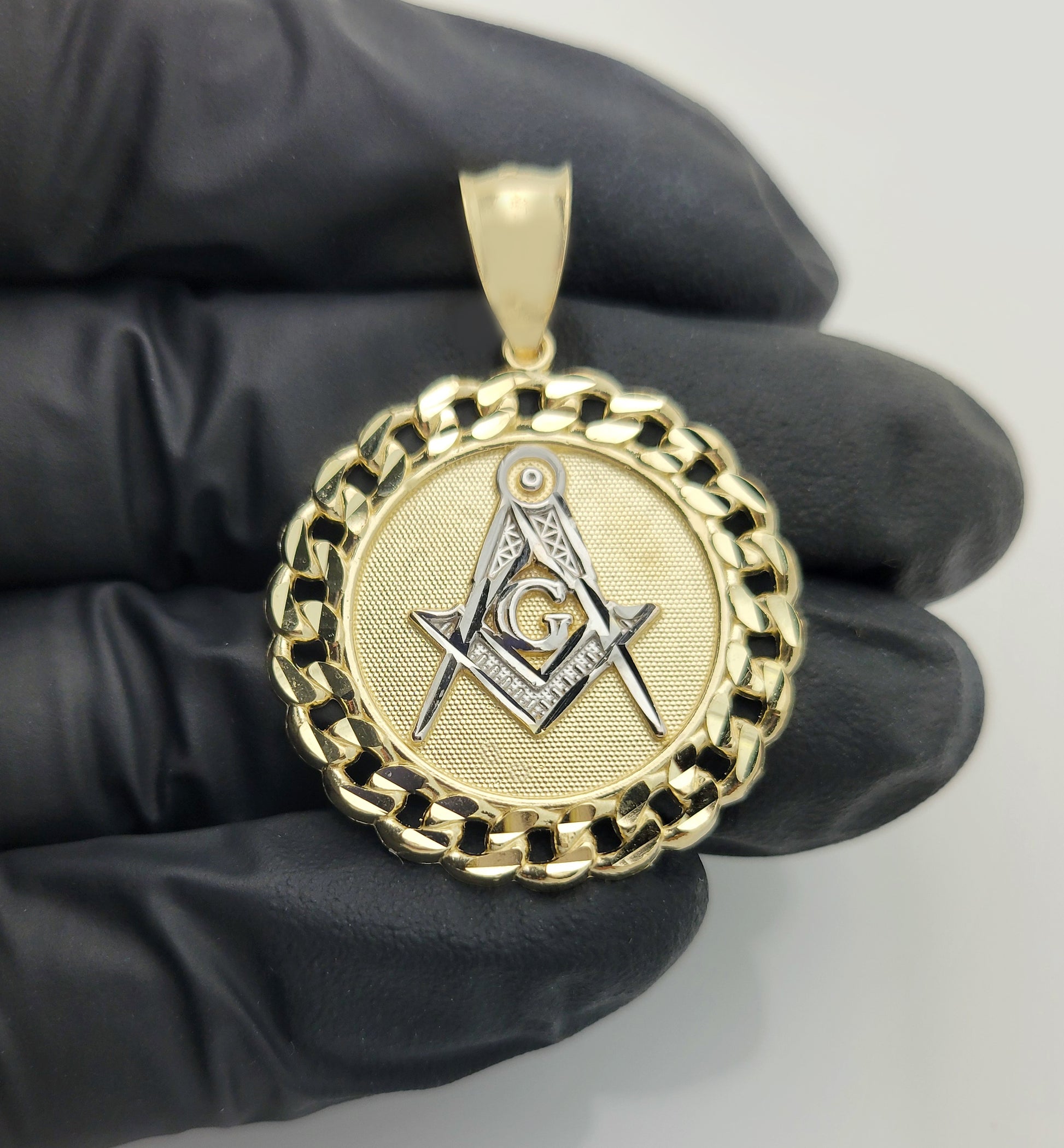 10K Yellow Solid Gold Masonic Pendant Freemason Necklace Pendant Masonic Medallion