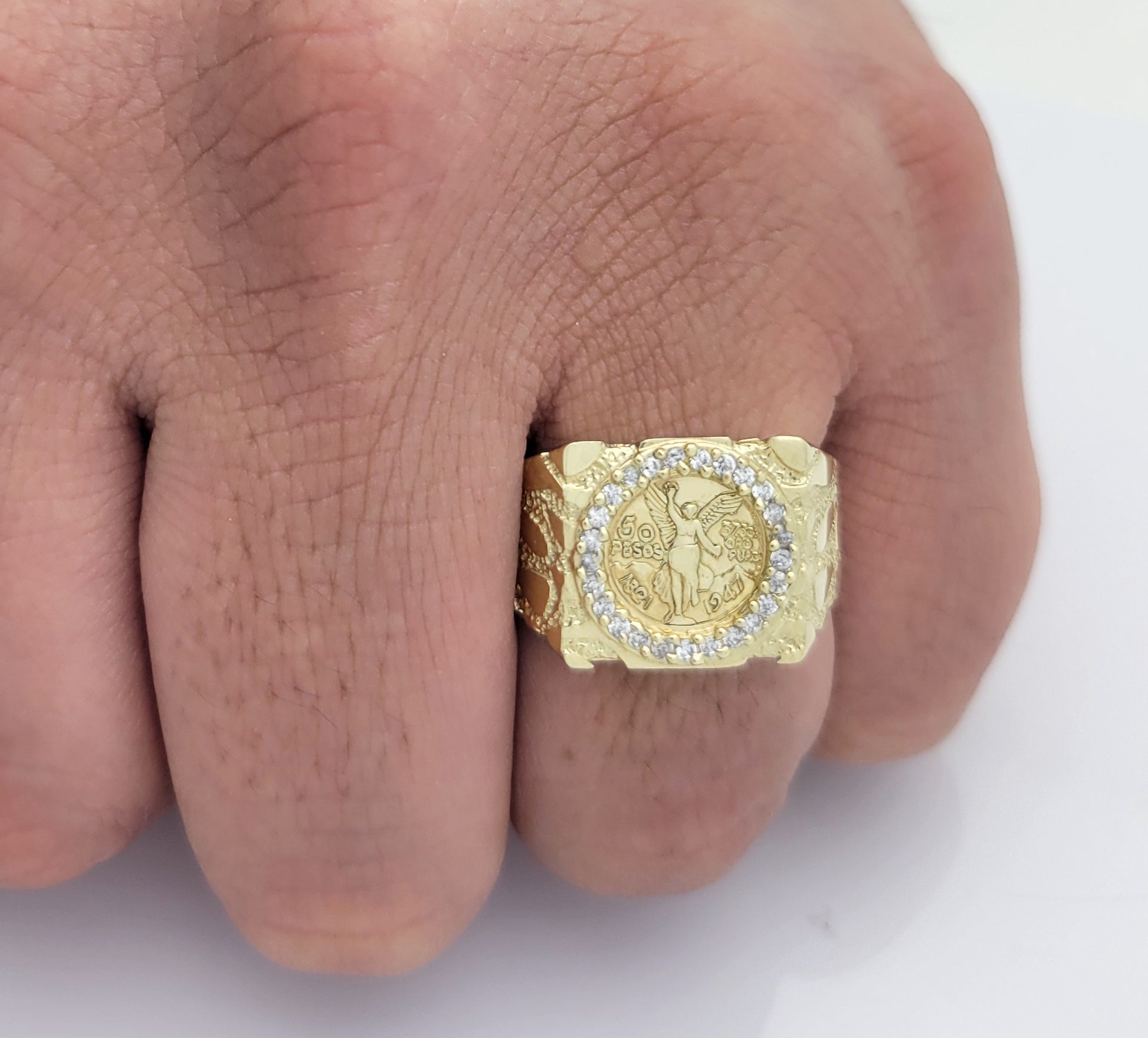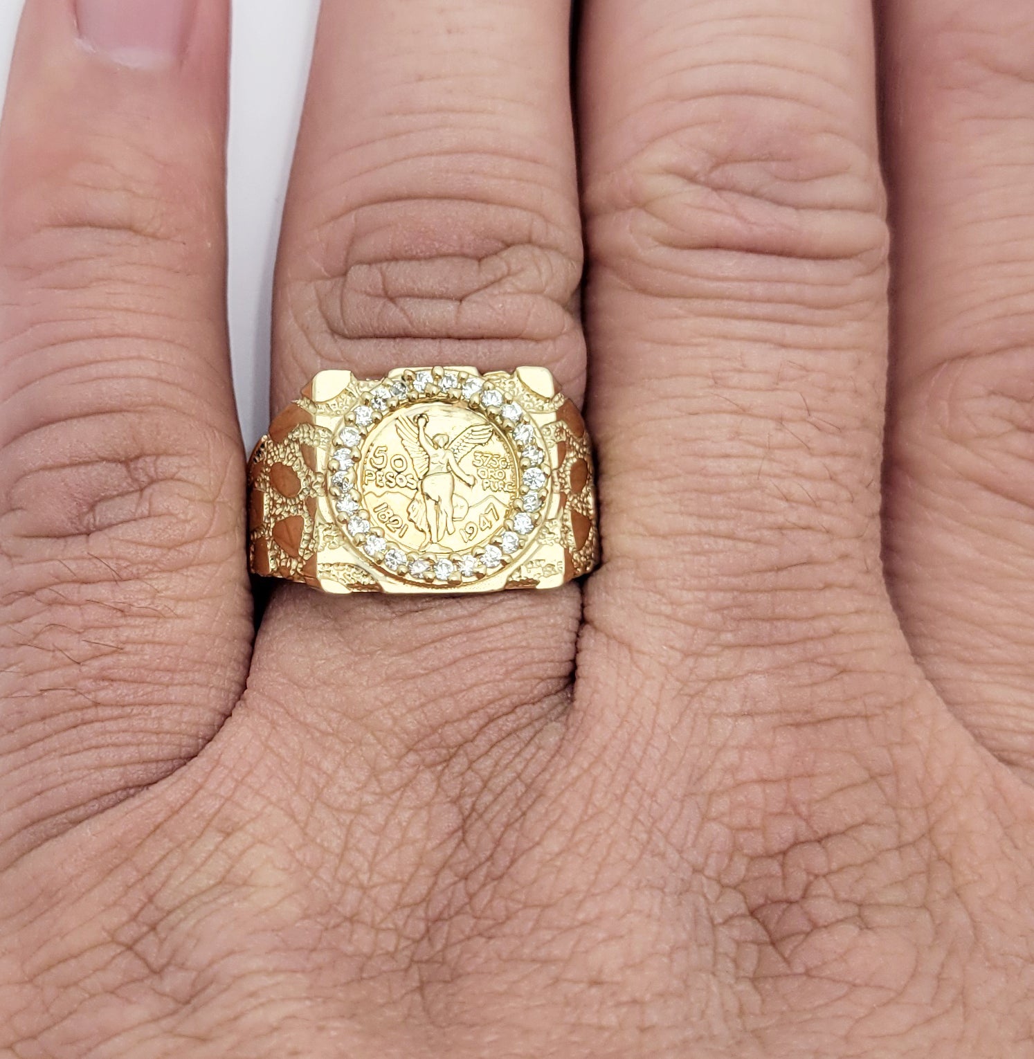 10K Yellow Gold 50 Pesos 1821 Coin Ring Nugget Gold Coin Ring