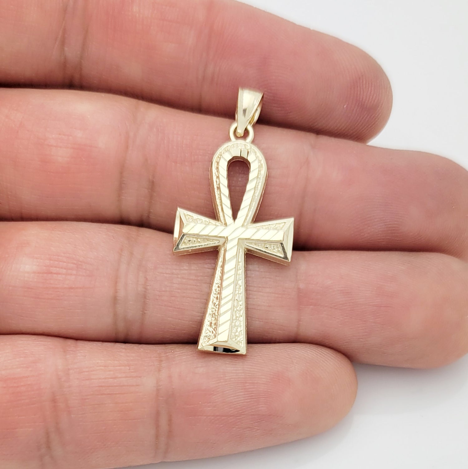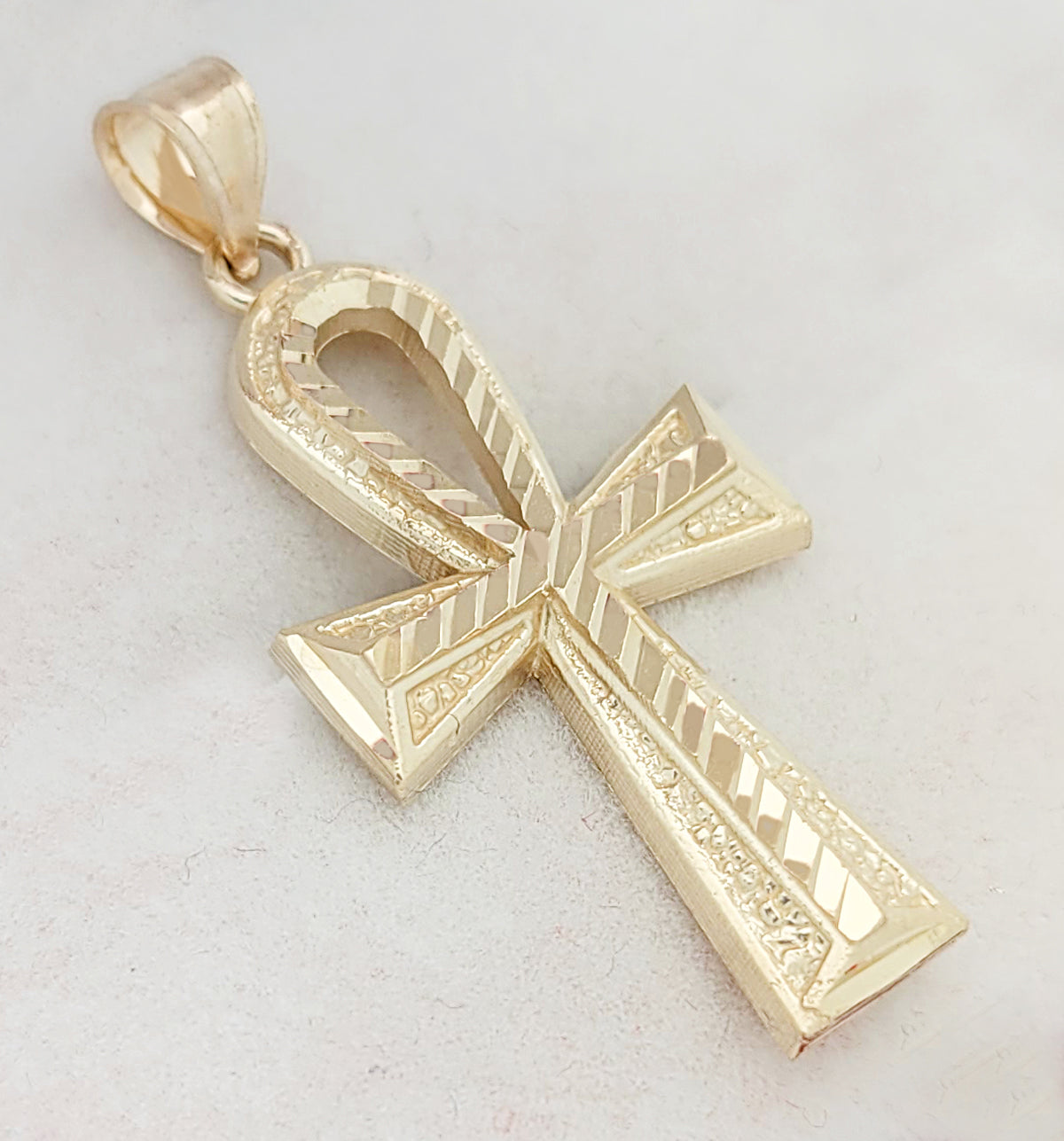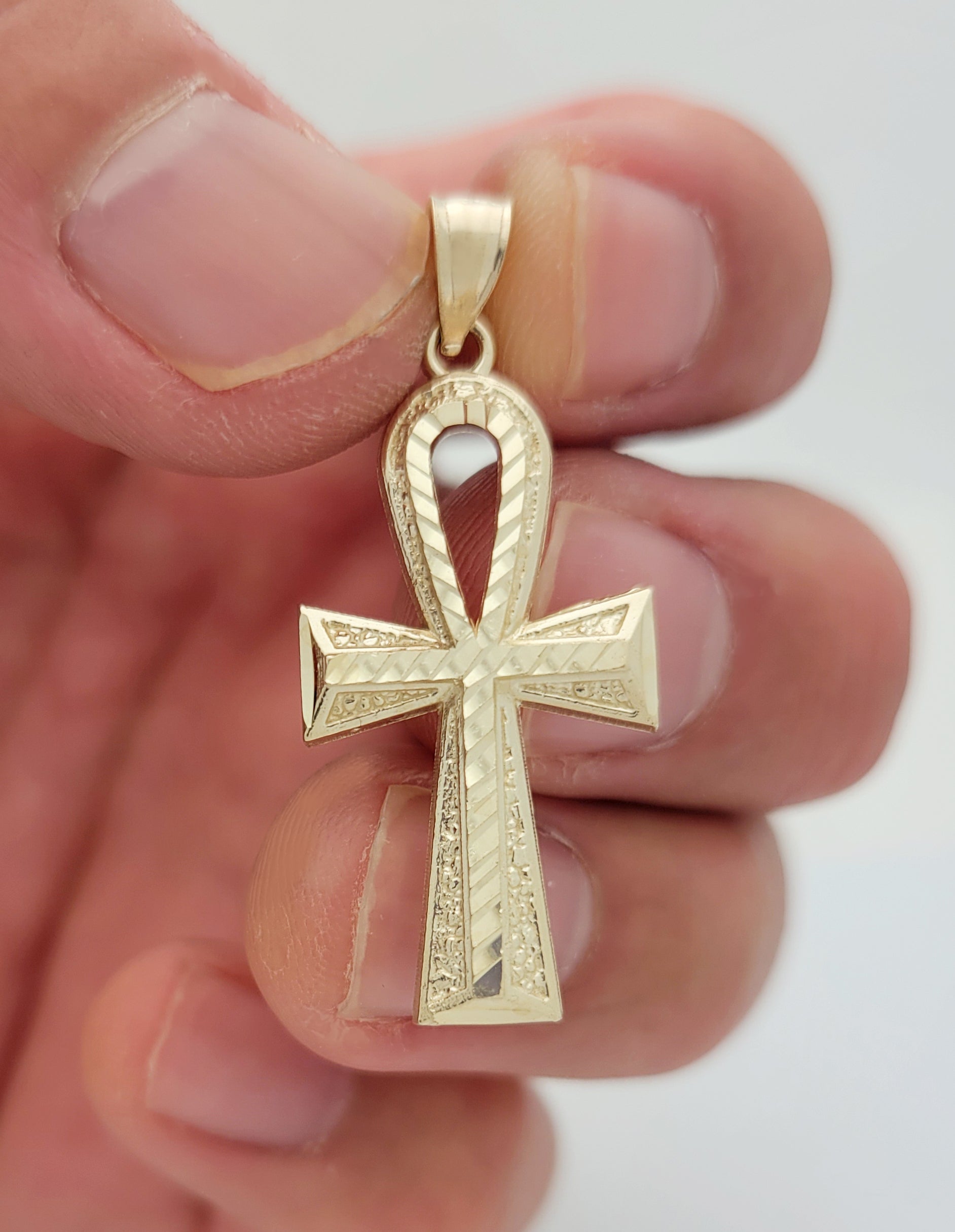 - Authentic Yellow Gold Egypt Ankh Cross Pendant