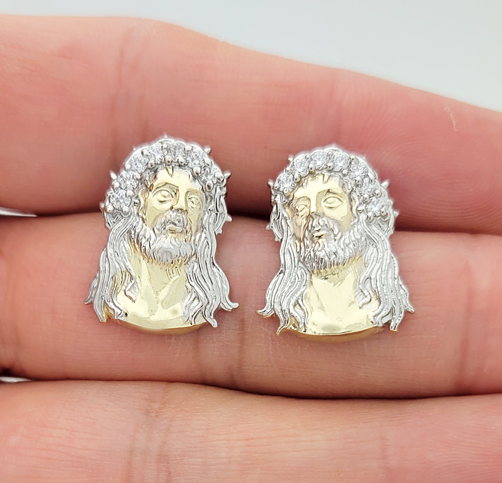 Men's 10K Yellow Gold Jesus Earrings Jesus Face CZ Earrings 0.85 in x 0.7 in