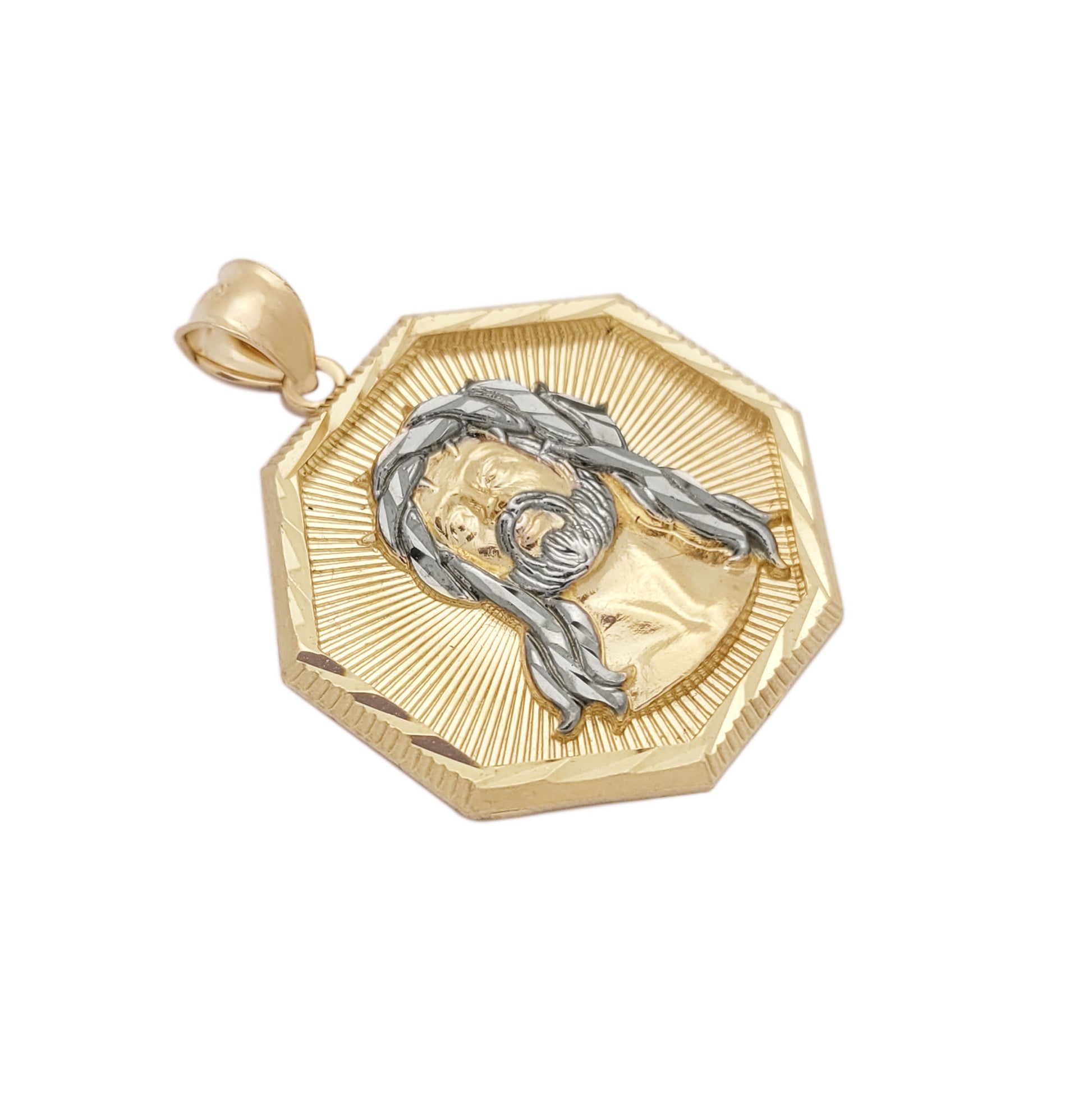 Men's 10k Yellow Gold Jesus Face Medallion Jesus Charm Octagon Pendant