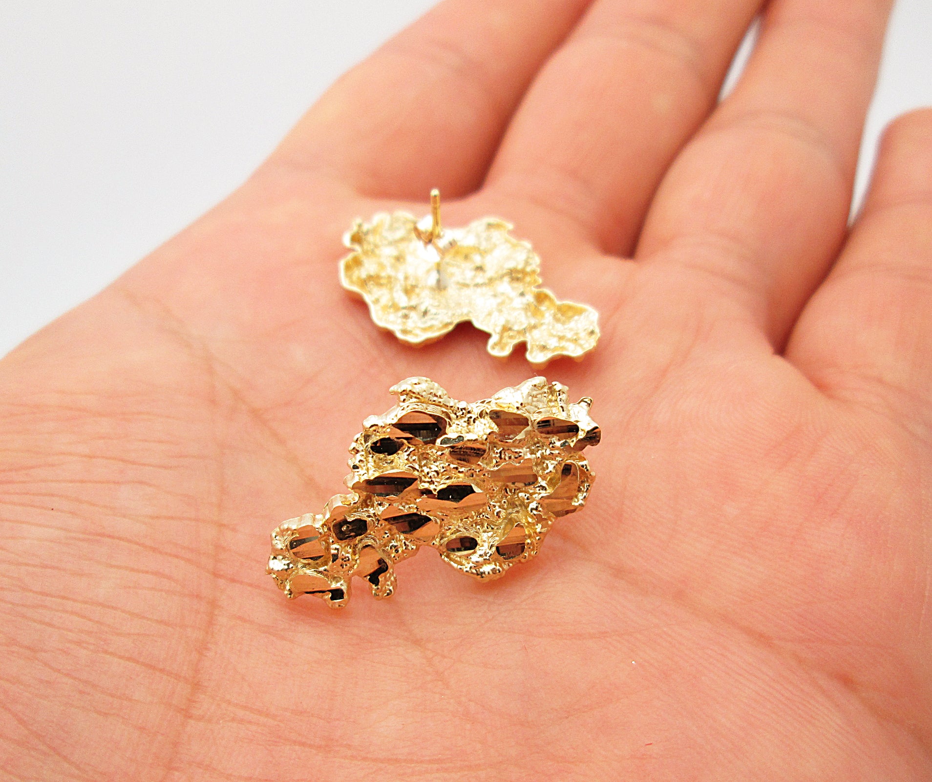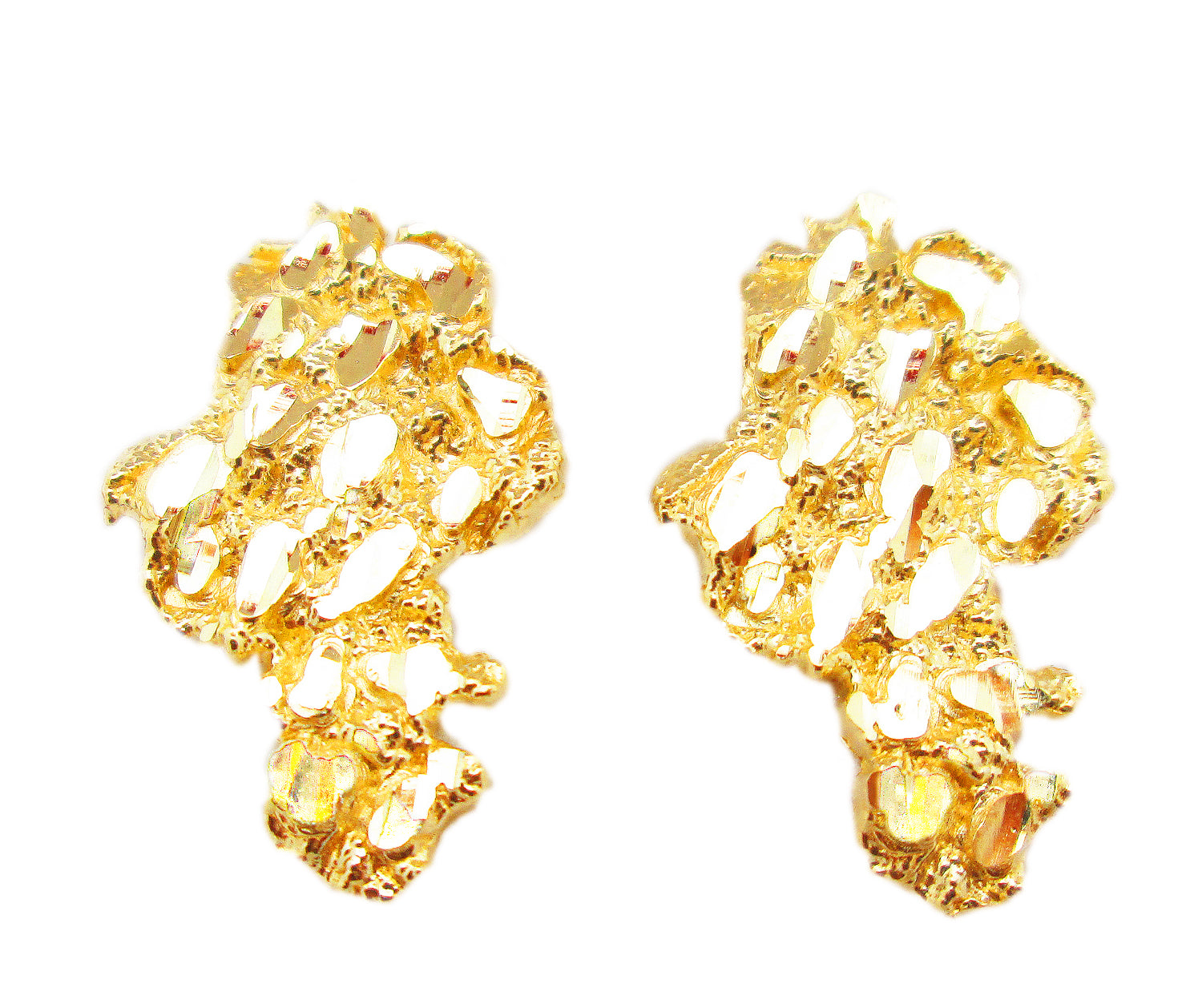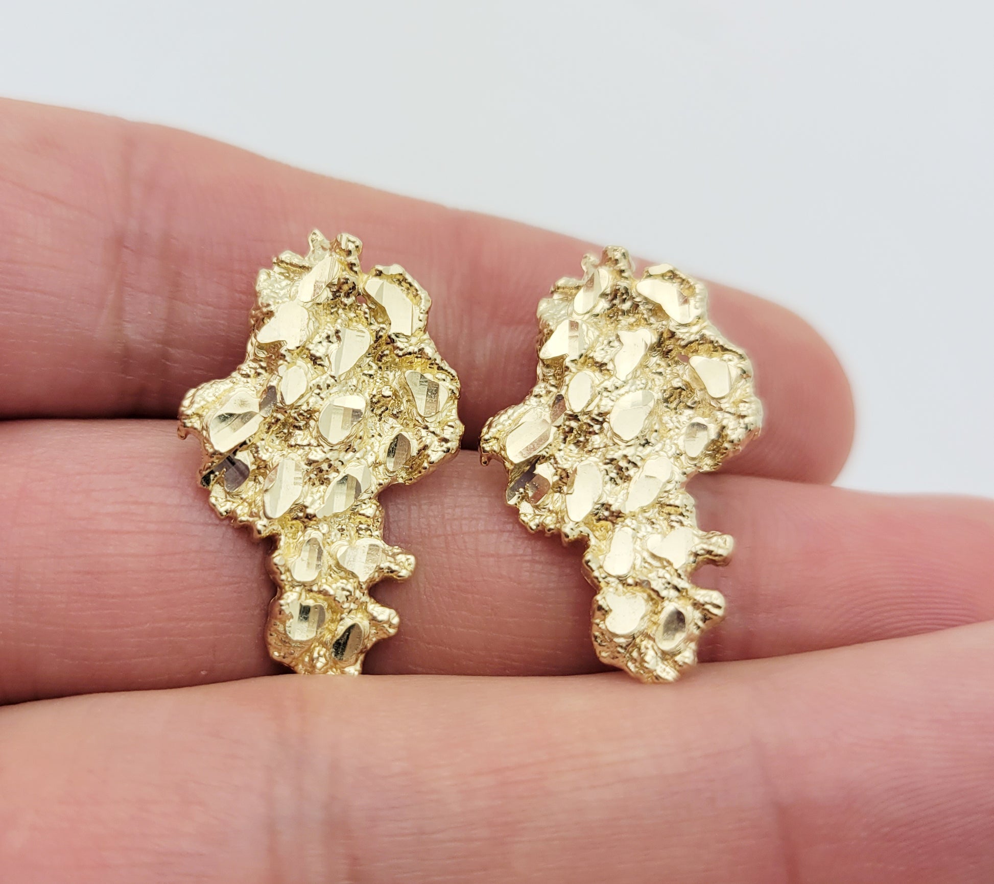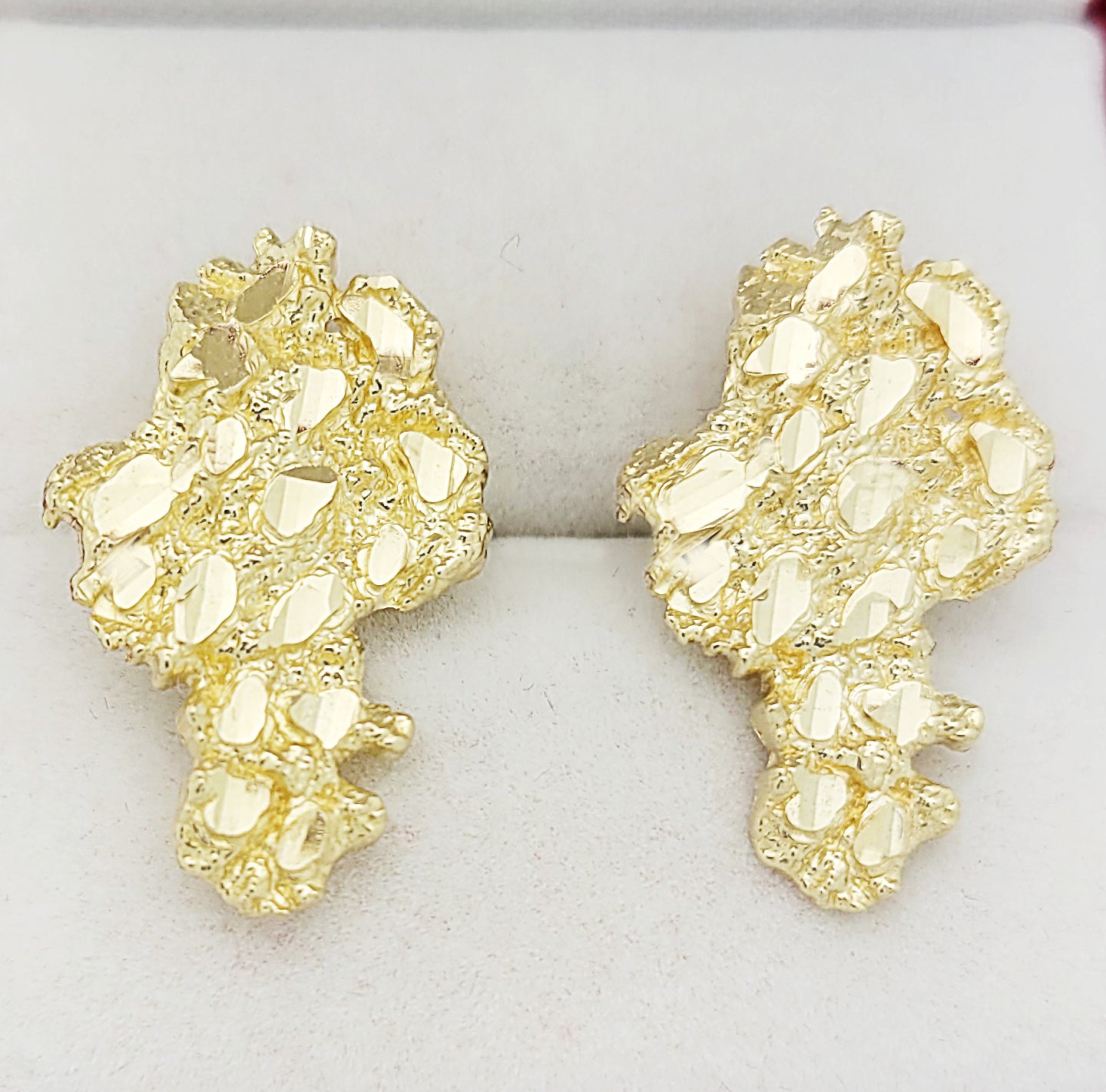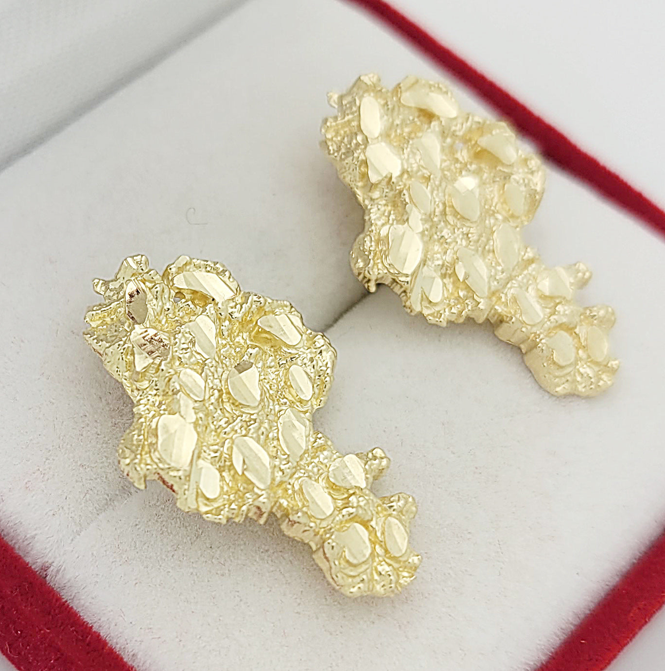 Mens 10k Yellow Gold Nugget Earrings 1 inch Solid Gold Earrings
