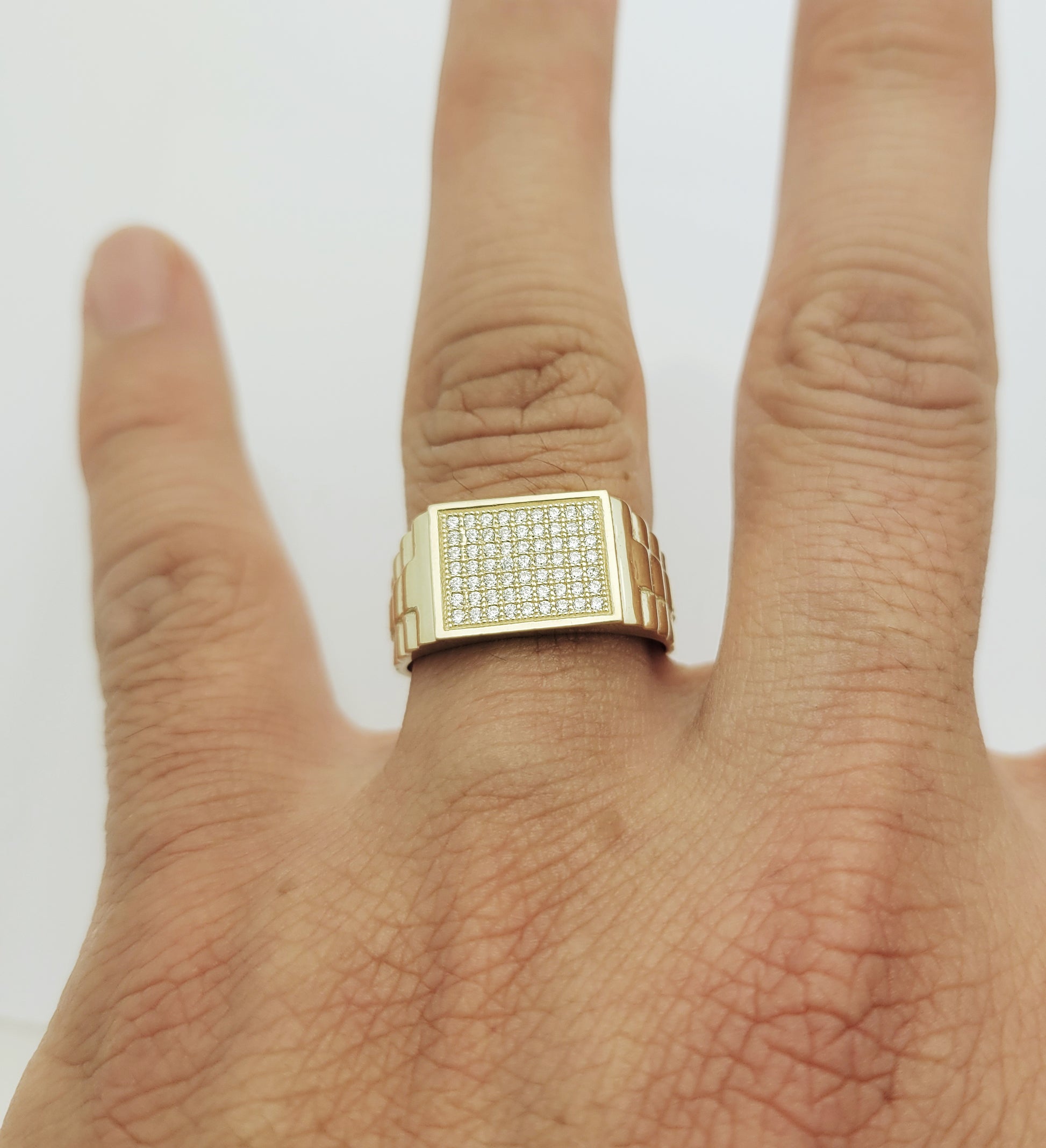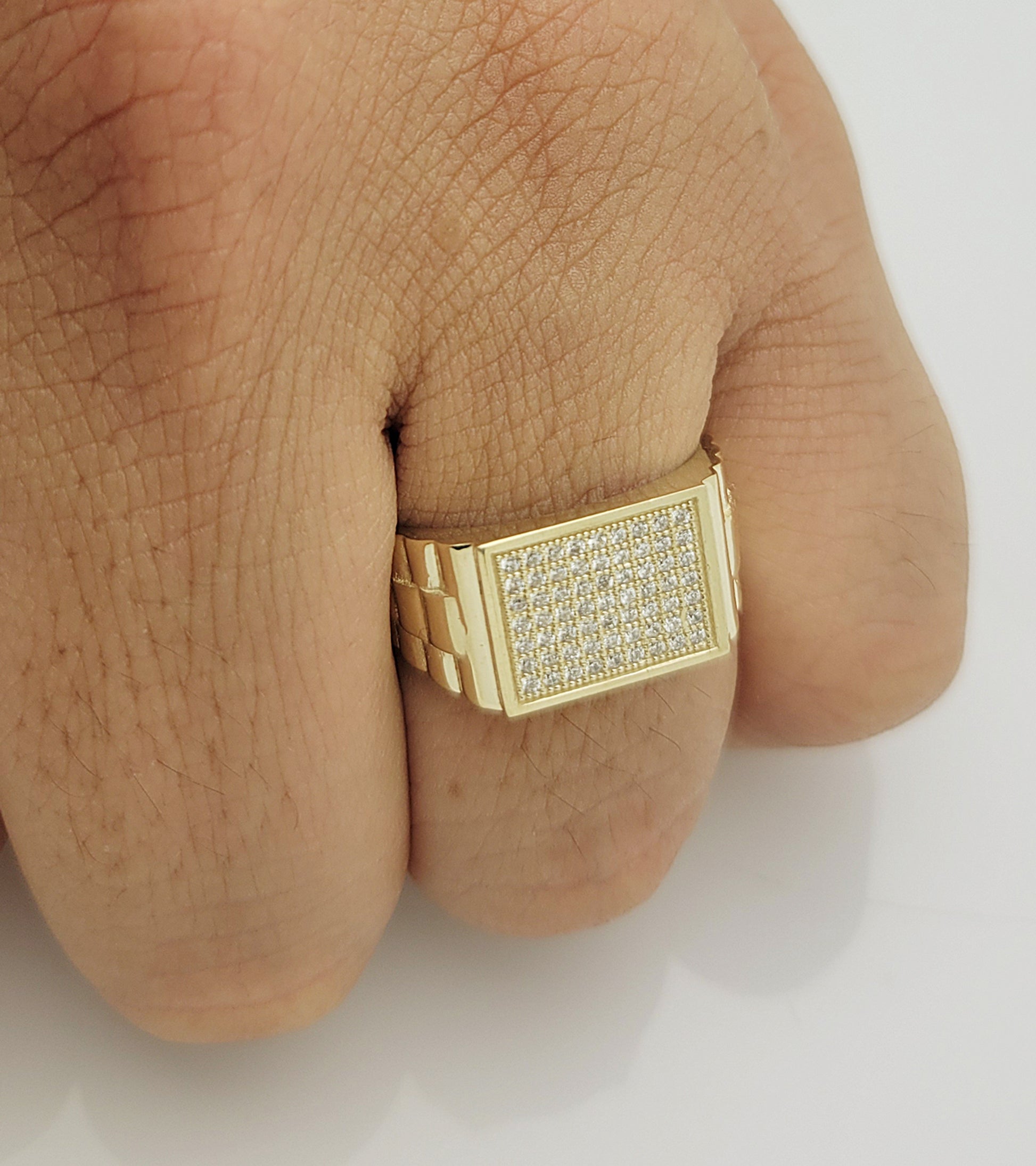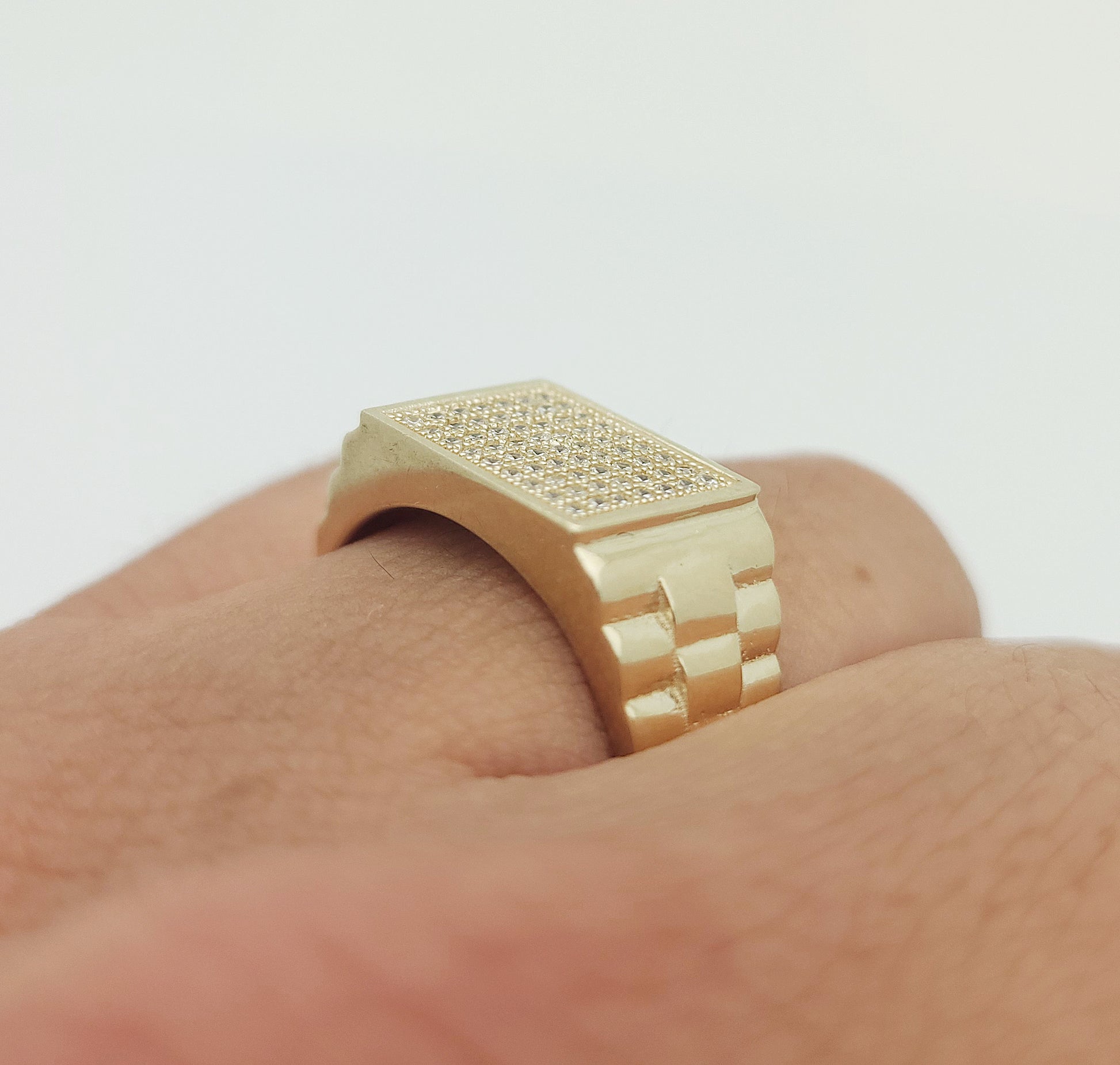 Mens Gold CZ Ring Micro Pave Setting 10K Yellow Gold Rolex Style