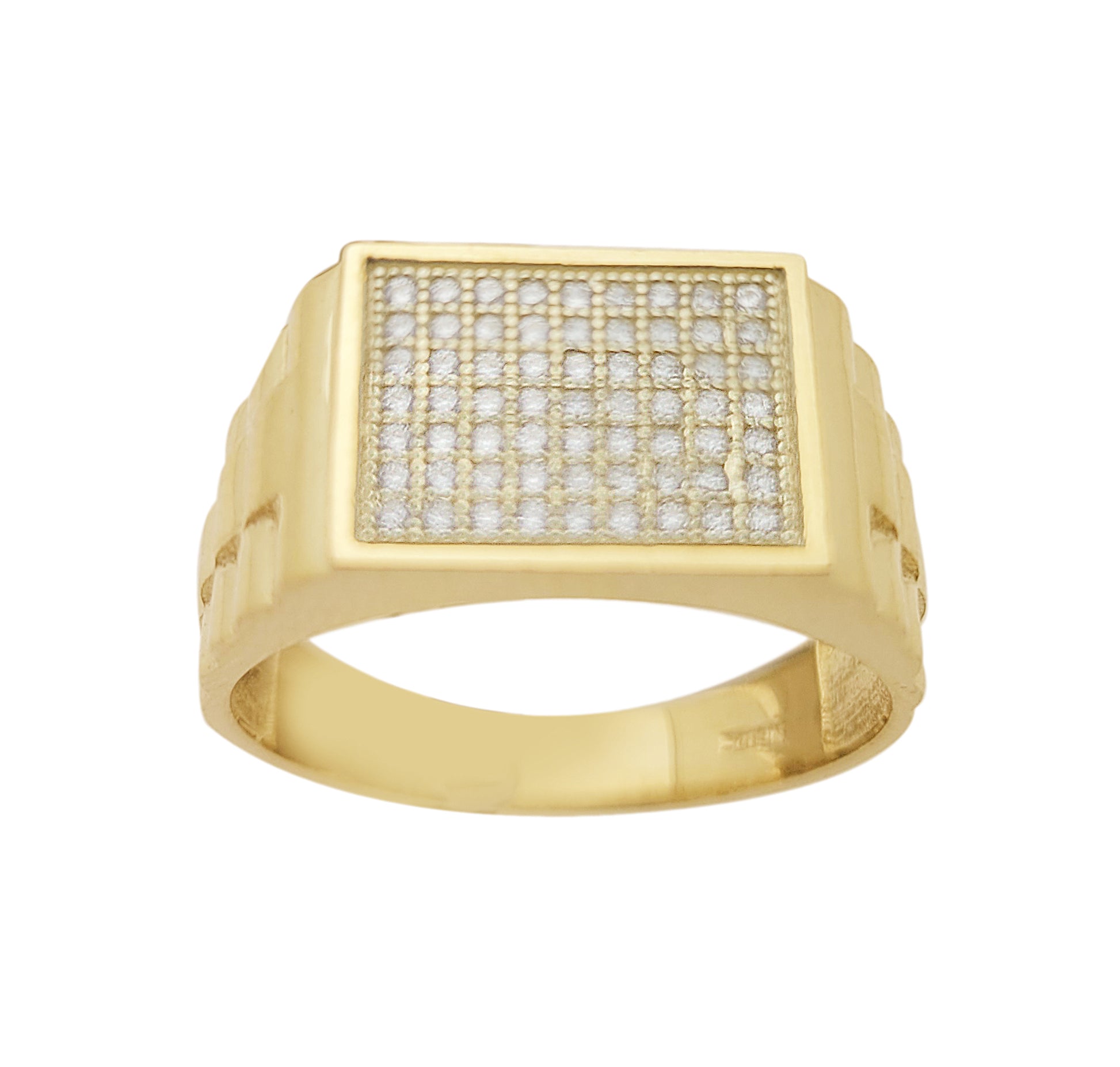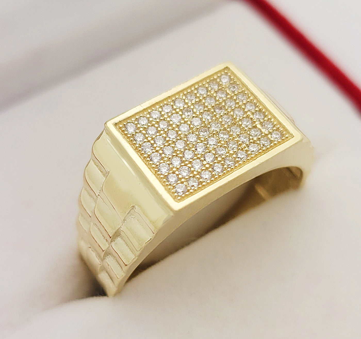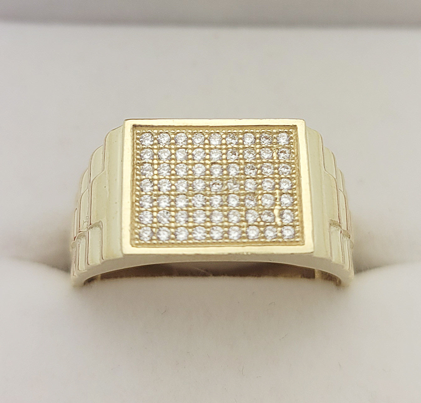 Mens Gold CZ Ring Micro Pave Setting 10K Yellow Gold Rolex Style