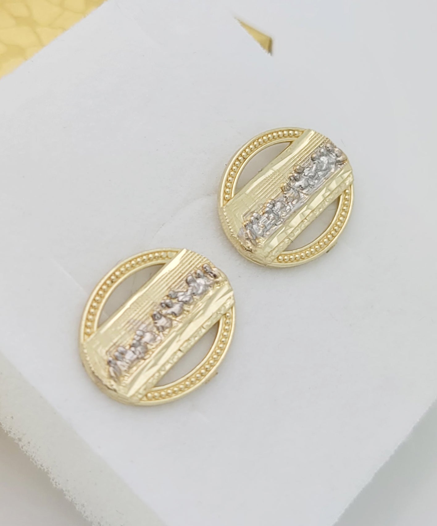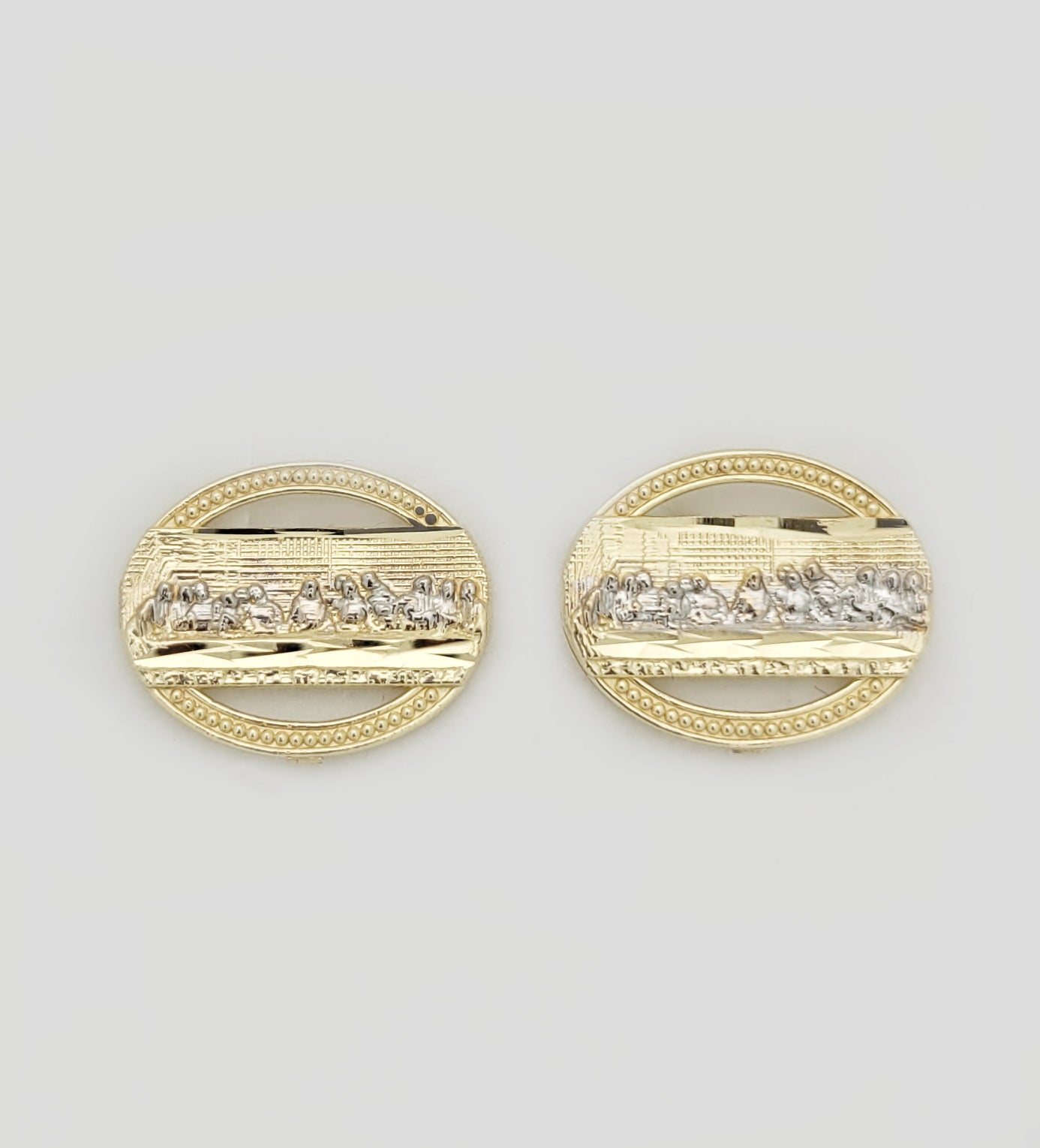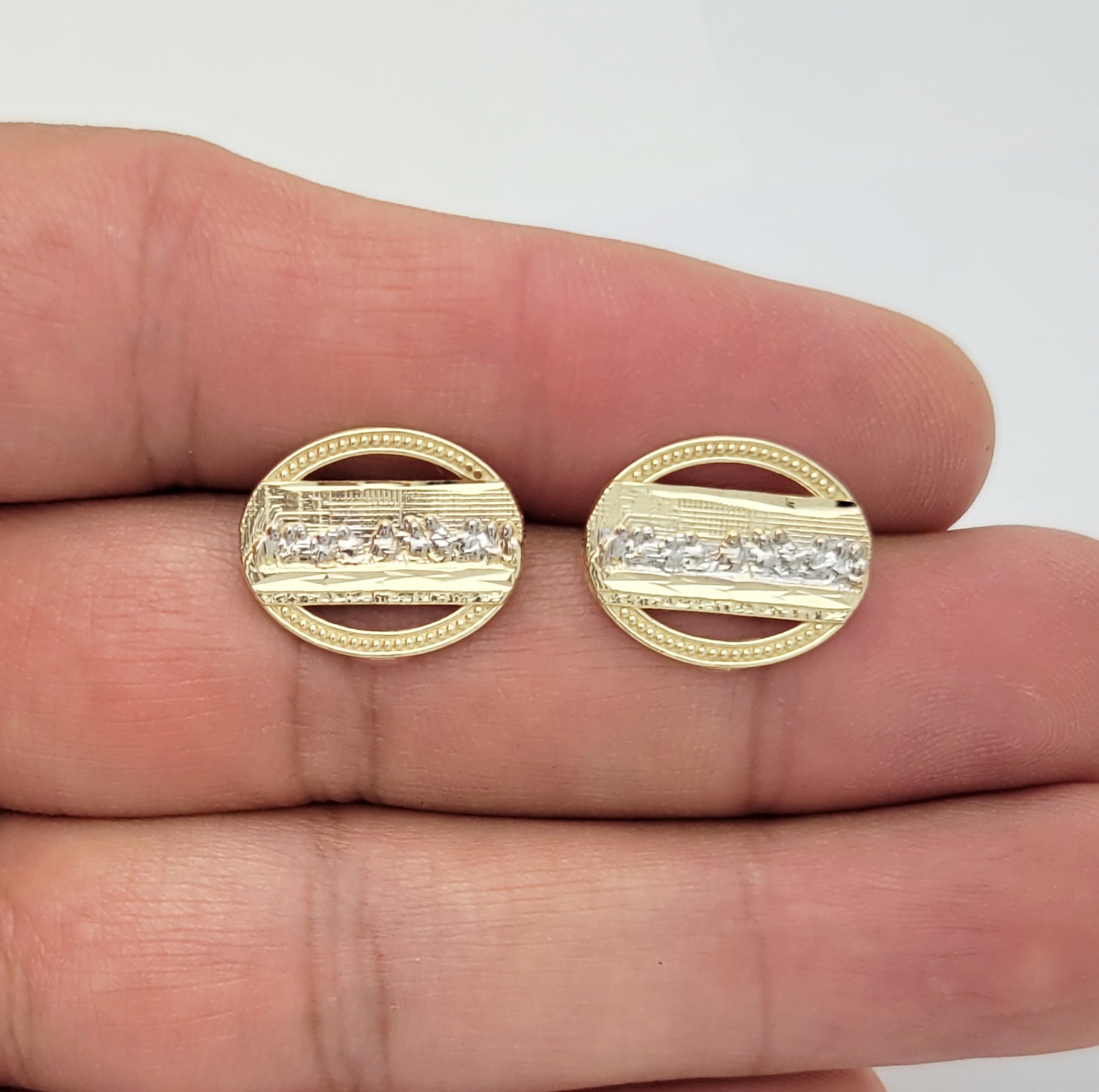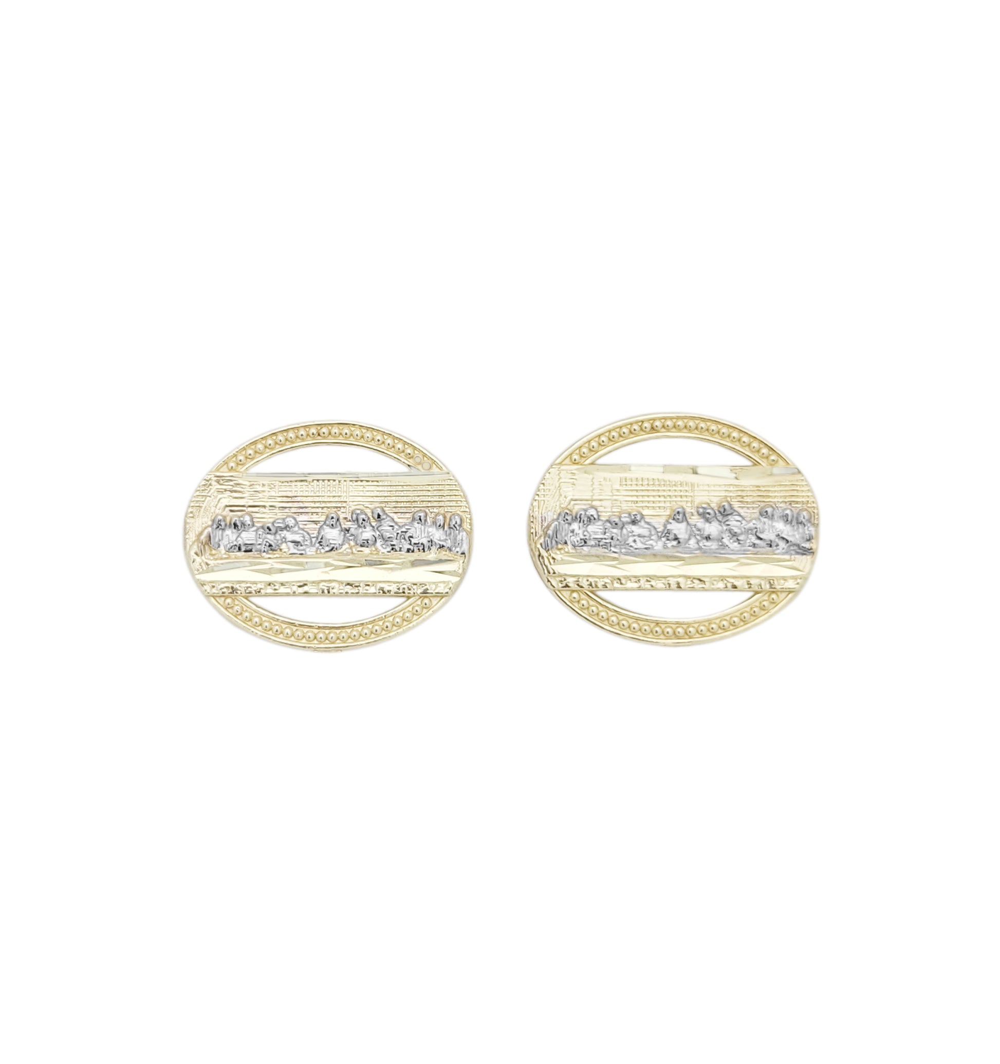 Men's Gold Last Supper Earrings 10K Yellow Gold Oval Last supper