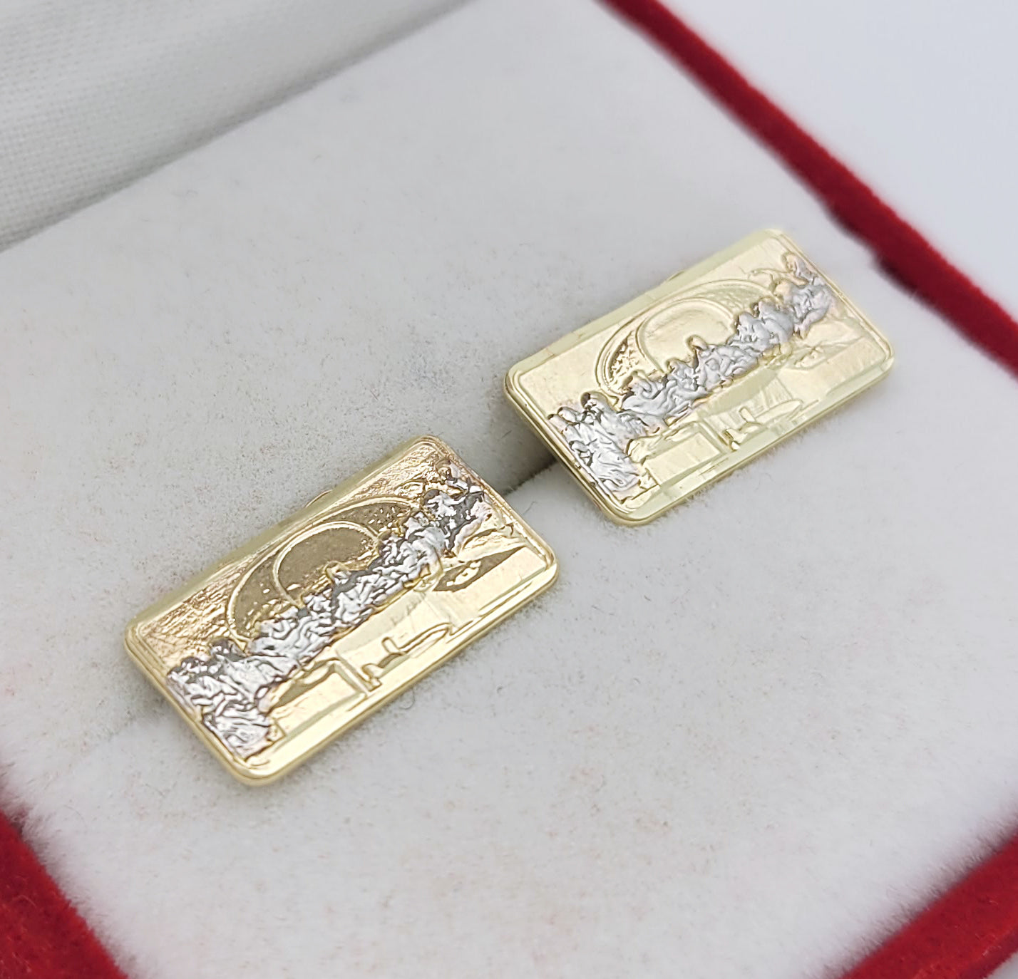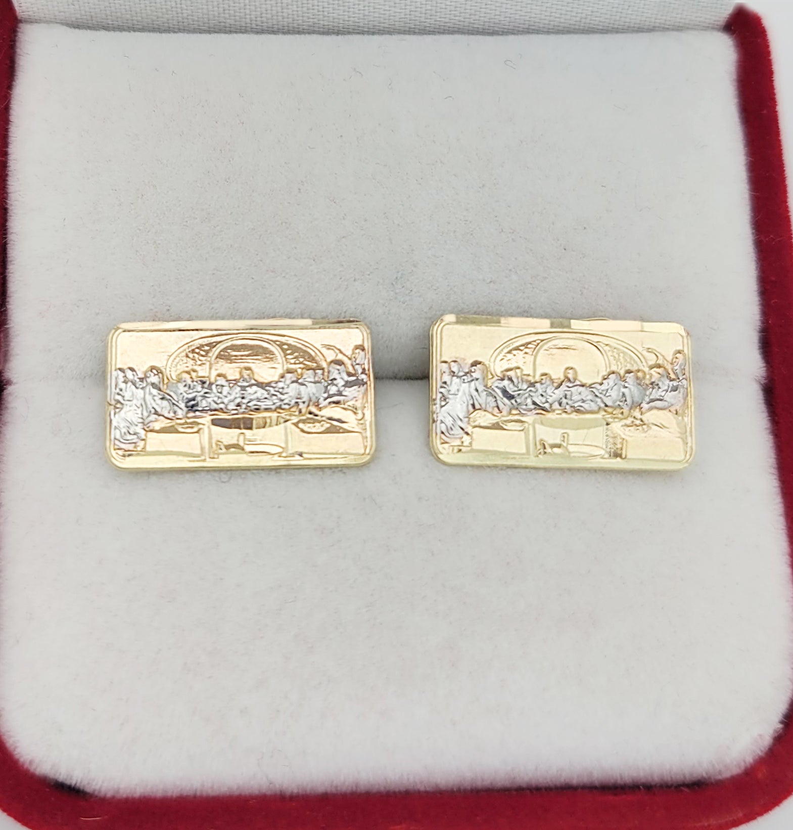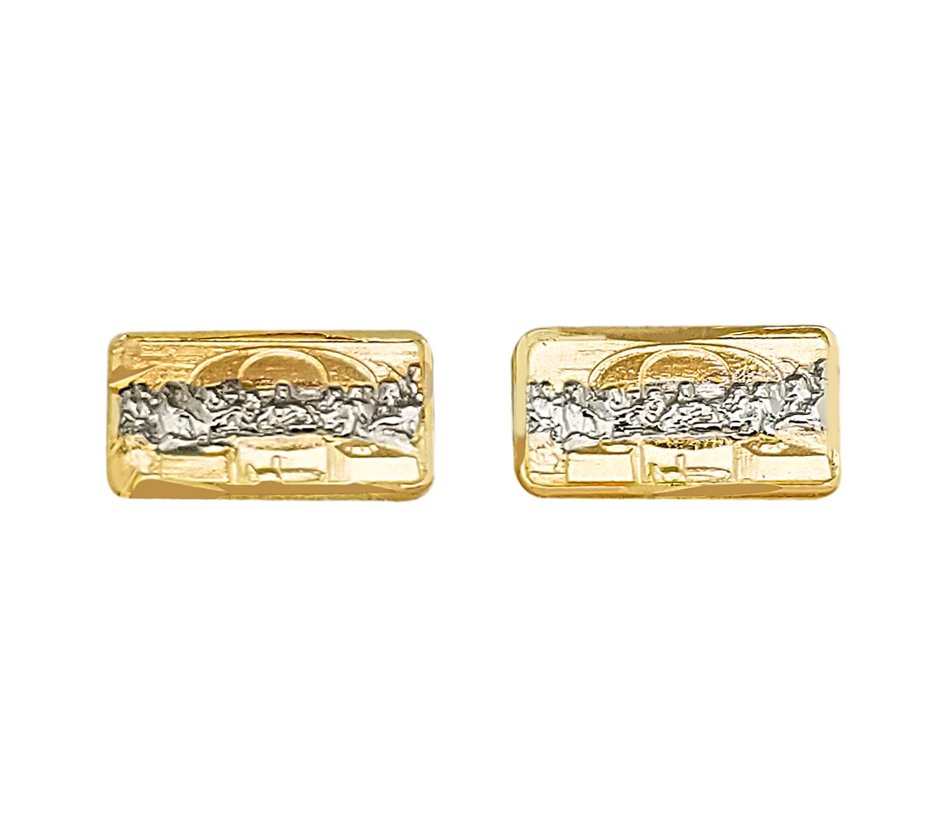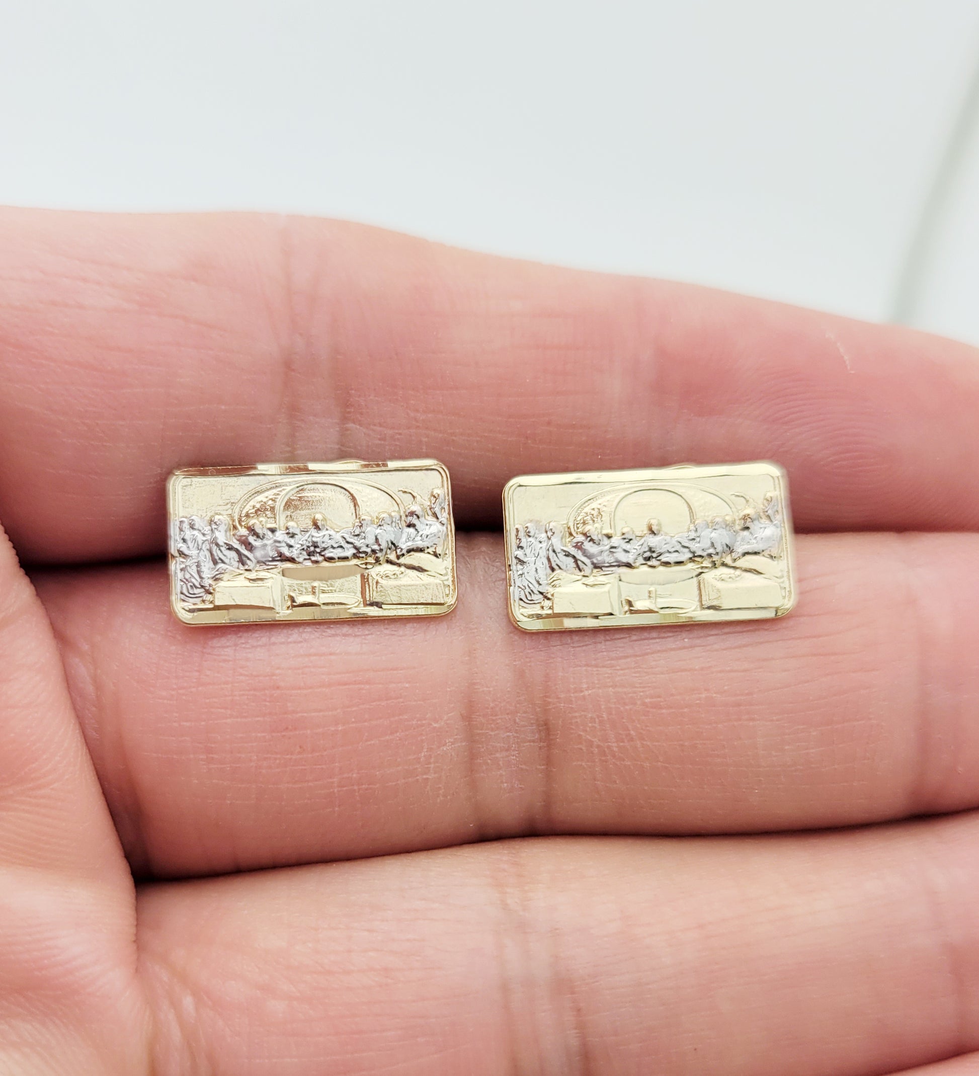 Men's Gold Last Supper Earrings 10K Yellow Gold Rectangle Last Supper Earrings 0.65 in x 0.4 in