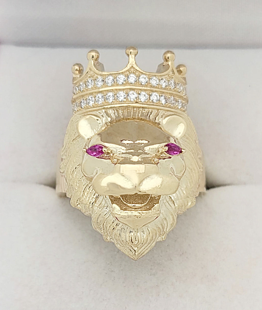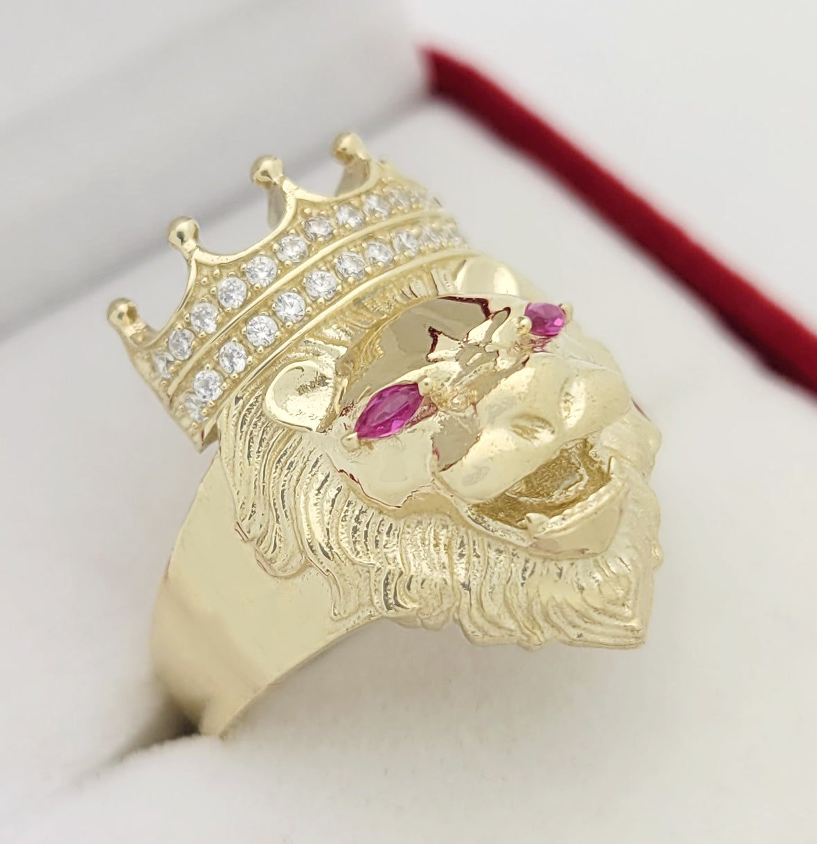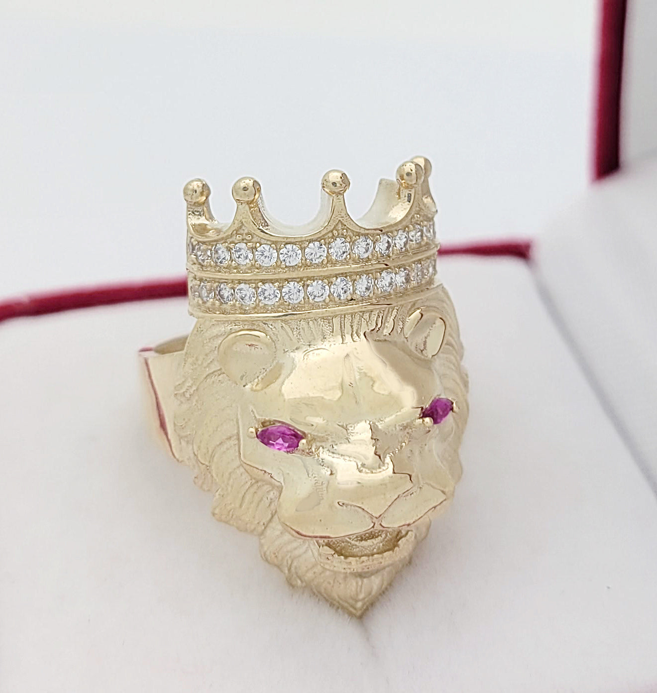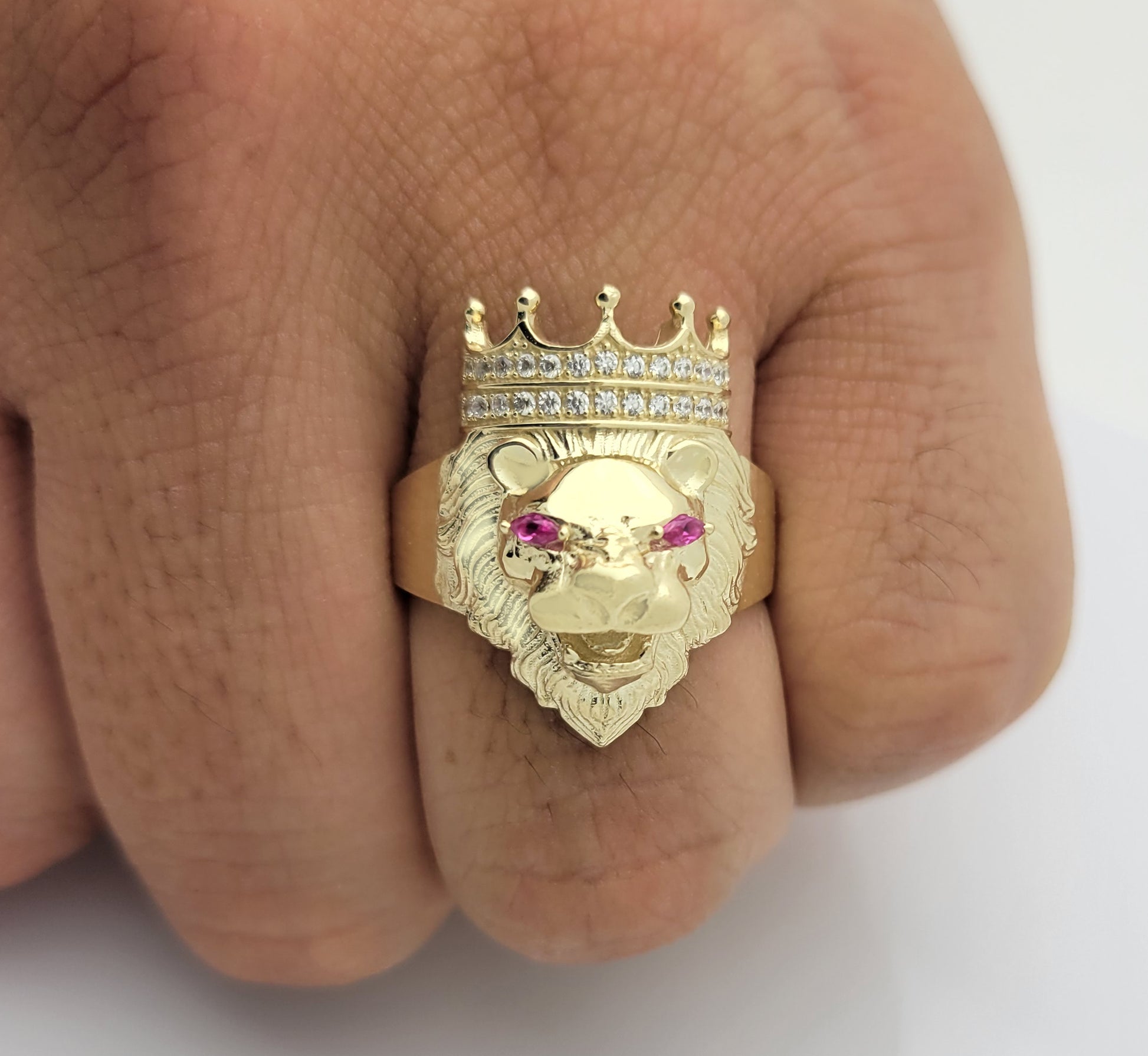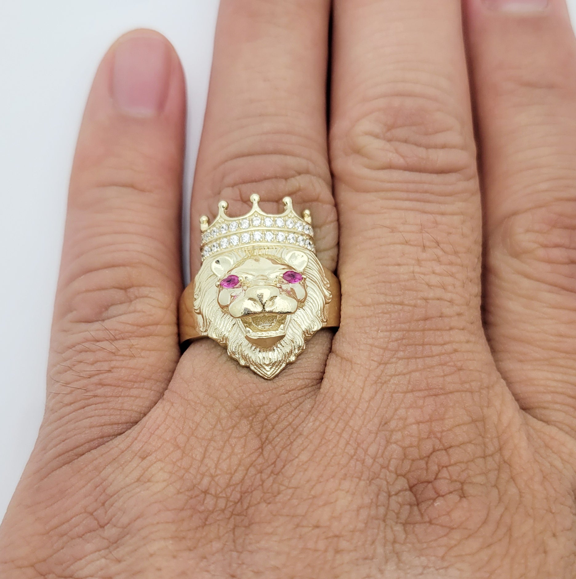 Men's Lion Head Ring 10K Yellow Gold Crown Lion Face Ring 1.0 in x 0.55 in
