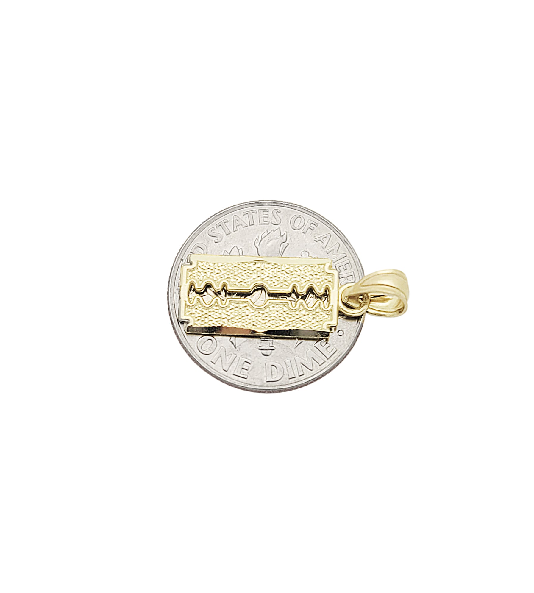 Solid 10K Yellow Gold Razor Blade Necklace Pendant Charm Small